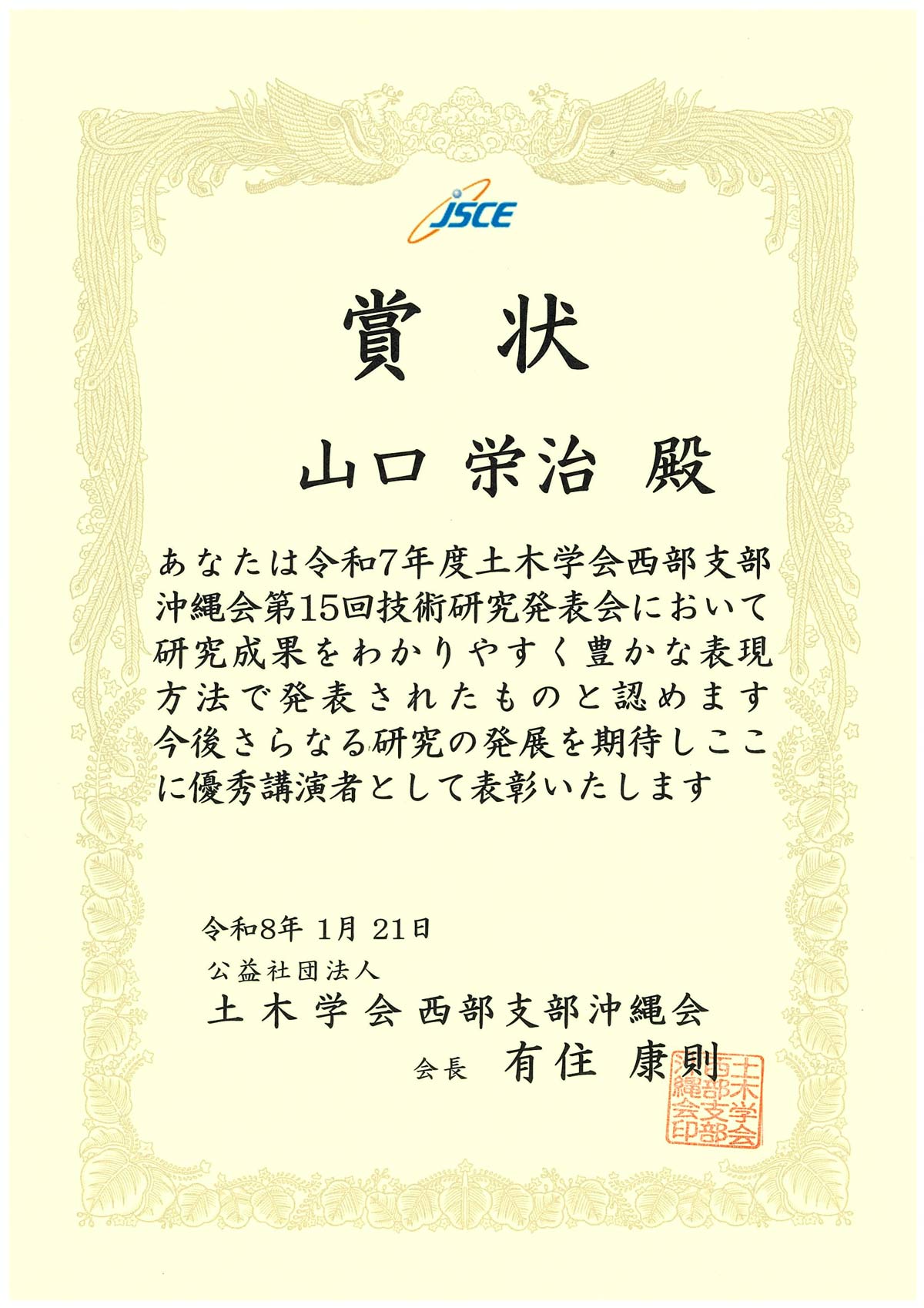 令和8年1月21日(水)に開催された「2025年度土木学会西部支部沖縄会 第15回技術研究発表会」にて,生産エネルギー工学専攻の山口英治さん(博士後期課程1年),社会基盤デザインプログラムの国場有沙さん(博士前 […]