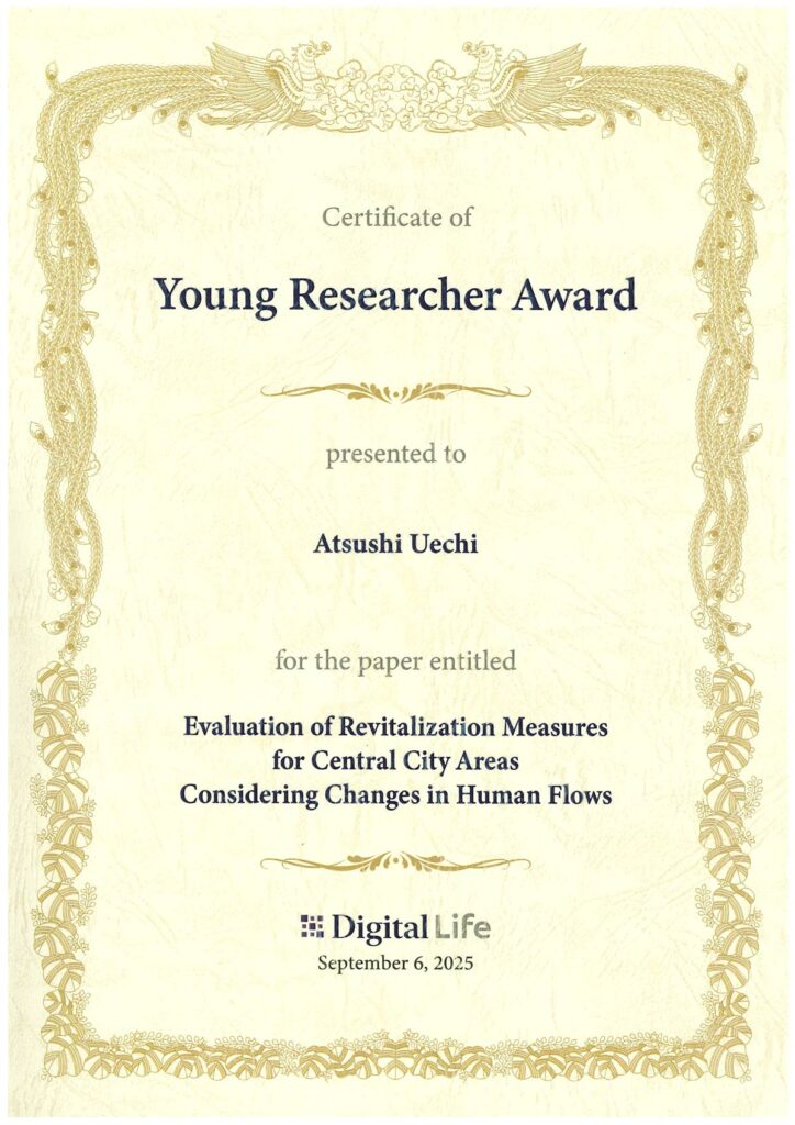 上地安諄助教らの論文が,Journal of Digital Life「Young Researcher Award」を受賞しました.(HP:https://journal-digitallife.com/news/2025-award-winners/)